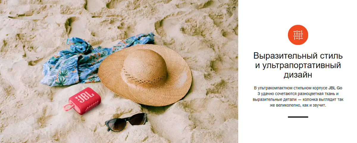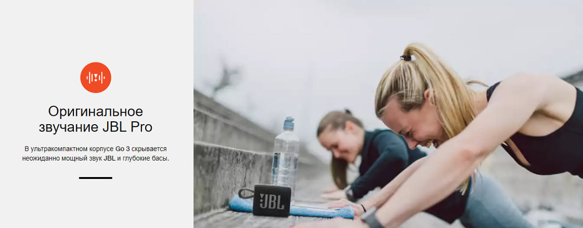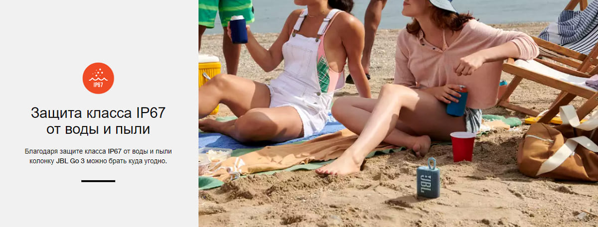 Стильная JBL Go 3 подарит вам богатое звучание JBL. Новый привлекательный и смелый дизайн, разноцветная ткань и выразительные детали — этот аксессуар невозможно не взять в следующую поездку. C JBL Pro ваши мелодии зазвучат по-новому. Благодаря защите класса IP67 от воды и пыли вы сможете наслаждаться музыкой даже под дождем, а встроенная ручка позволит прикрепить колонку куда угодно. Go 3 предлагается в совершенно новых оттенках и цветовых сочетаниях, характерных для современной уличной моды. JBL Go 3 выглядит так же ярко, как звучит.